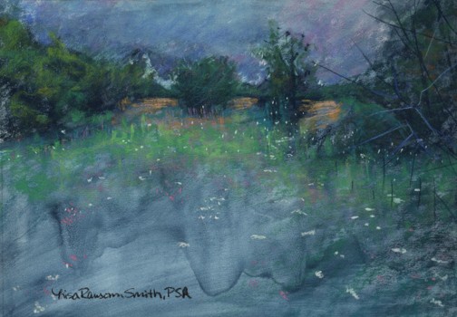I will surely have those four paintings finished next month, as I do have specific plans for them.  In the mean time, I have donated two of my favorite pieces to my local museum for their ARTrageous Gala fundraiser.  These are examples of my earlier work.  I had just started working with a gritty surface and rubbing alcohol.  I used the alcohol and a paintbrush to work the pastel into the surface and to layout my composition.  Once it was dry, I worked over the underpainting with soft pastel.  For me, it was the best of both worlds, painting with a brush and then working with the medium in my hand.  I don’t use rubbing alcohol any longer as it removes the grit from the surface if I work with it too long.  I now use Turpenoid.  It allows me to rework an area if I choose to.
