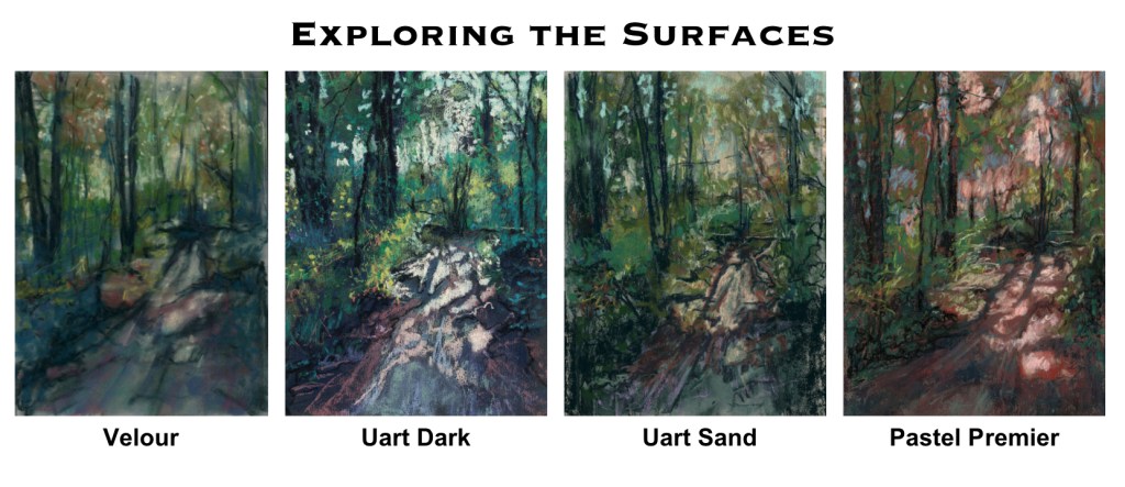 I liked this surface too!  I did get a little bit of pastel dust.  I am always surprised when I don’t get a lot!  One of the very first surfaces that I worked with created a lot of dust.  And dust falling out of your painting is like money falling out.